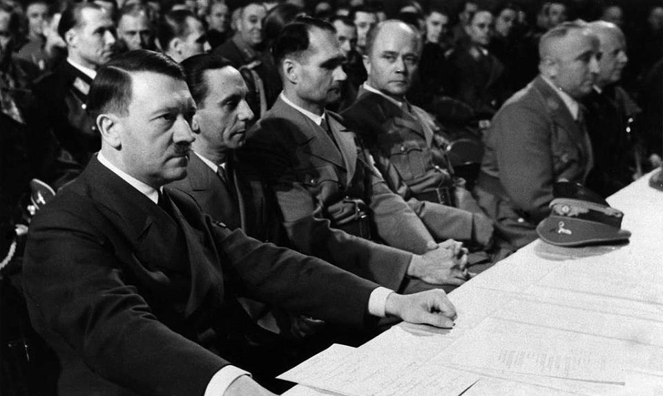 | Adolf Hitler mit Joseph Goebbels und Leni Riefenstahl |